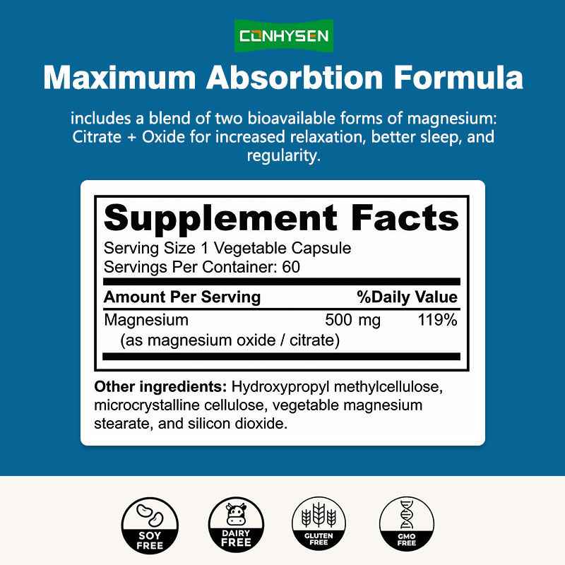 Magnezyum kapsülleri, vücudu gerekli mineral magnezyum ile temin etmeyi amaçlayan, esas olarak magnezyum elementlerinden veya magnezyum bileşiklerinden oluşan diyet takviyeleridir.İnsan vücudundaki dördüncü önemli katyon olarakMagnezyum, enerji metabolizması, protein sentezi ve sinir sinyali iletimi gibi önemli fizyolojik süreçlere katılarak 300'den fazla biyokimyasal reaksiyonda önemli bir rol oynar.Magnezyum kapsülleri farklı magnezyum tuzlarını kapsar, örneğin magnezyum oksit, magnezyum sitrat ve glisin magnezyum kapsüller içinde,Monoton bir diyet veya özel fizyolojik ihtiyaçlar nedeniyle yeterli magnezyum alımı olmayan insanlar için magnezyum takviyesi almak için uygun ve verimli bir yol sağlayan.