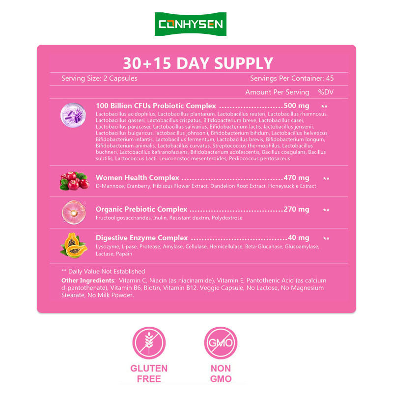 Ürün, probiyotiklerin yüksek aktivitede kalmasını ve midenin asidik ortamından geçtikten sonra bağırsaklara ulaşmasını sağlamak için gelişmiş asit dirençli gömme teknolojisi kullanır, böylece optimum etkinliklerini gösterirler. Ek olarak, eklenen prebiyotikler, probiyotikler için sürekli enerji sağlar ve bağırsaklardaki faydalı bakterilerin baskın konumunu daha da güçlendirir. İster adet veya hamilelik gibi özel dönemlerdeki kadınlar olsun, isterse günlük olarak sağlık yönetimiyle ilgilenen modern kadınlar olsun, günde iki kapsül Kadın Probiyotik almak, hem vücudu hem de zihni içten dışa besleyebilir, sağlığın ve güvenin her zaman yanlarında olmasını sağlar.ODM/OEM Hizmeti