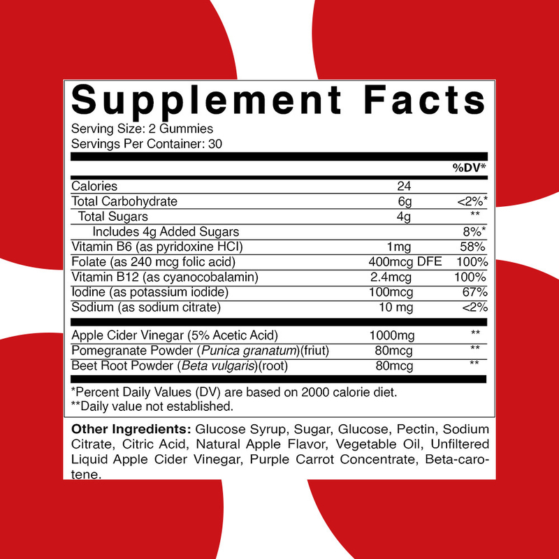 Elma Sirkesi, B6 Vitamini, Folat, B12 Vitamini, İyot, Sodyum, Nar Tozu, Pancar Kökü Tozu
