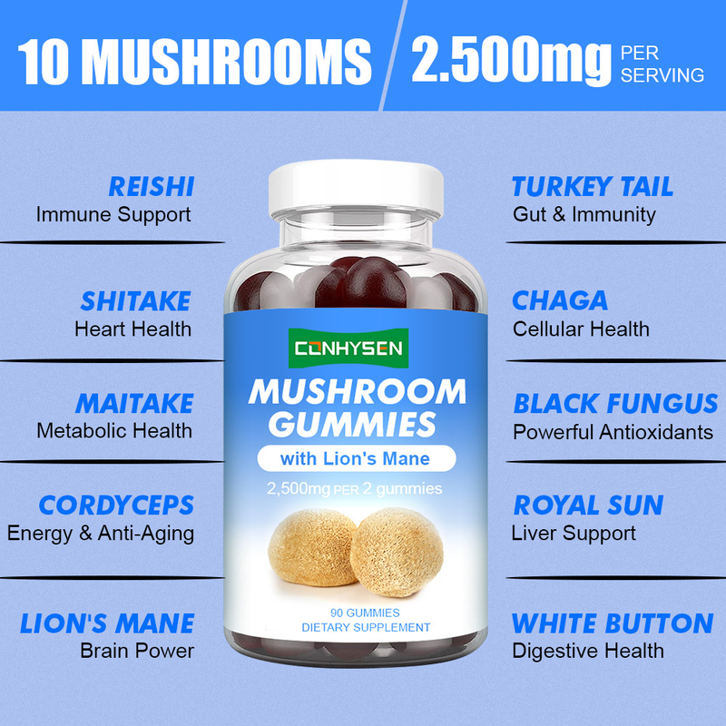 Mantar Gummies Tedarikçisi Özel 10 Arada Bir Formül Destek Kalp Sağlığı