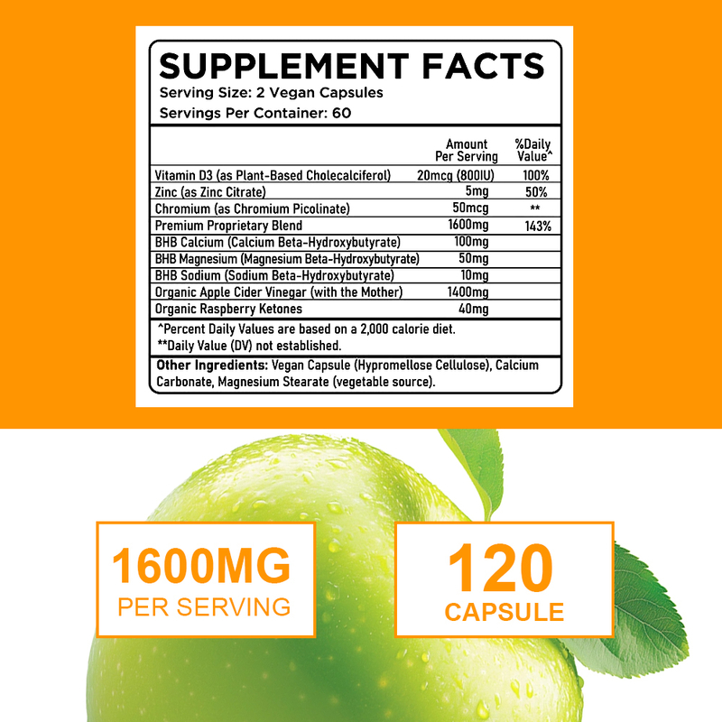 Organik Elma Baharı Asit, D3 Vitamini, Çinko, Krom, Üstün Özel Karışım, BHB Kalsiyum, BHB Magnezyum, BHB Sodyum, Organik Ahududu Ketonları