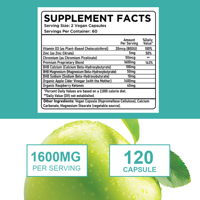 Organik Elma Baharı Asit, D3 Vitamini, Çinko, Krom, Üstün Özel Karışım, BHB Kalsiyum, BHB Magnezyum, BHB Sodyum, Organik Ahududu Ketonları