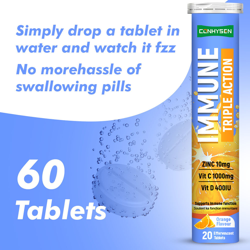 Immune Effervescent Tablets,Guangdong Kangsheng Farmasötik Teknoloji Şirketi, Ltd.Bu ürün bilimsel olarak üç temel bileşeni birleştirir: C vitamini, D vitamini,ve çinko - modern insanlar için uygun ve verimli bir bağışıklık desteği çözümü sağlamak içinGüçlü bir antioksidan olan C vitamini, beyaz kan hücrelerinin işlevini destekleyebilir ve vücudun direncini artırabilir.D vitamini bağışıklık sisteminin dengesini düzenlemeye ve kalsiyum emilimini iyileştirmeye yardımcı olurÇinko, bağışıklık hücrelerinin aktivitesini sürdürmek için önemli bir mineraldir. Üç element birlikte çalışır, sinerjik bir etki sağlar ve daha güçlü bir bağışıklık savunmasını oluşturmaya yardımcı olur.