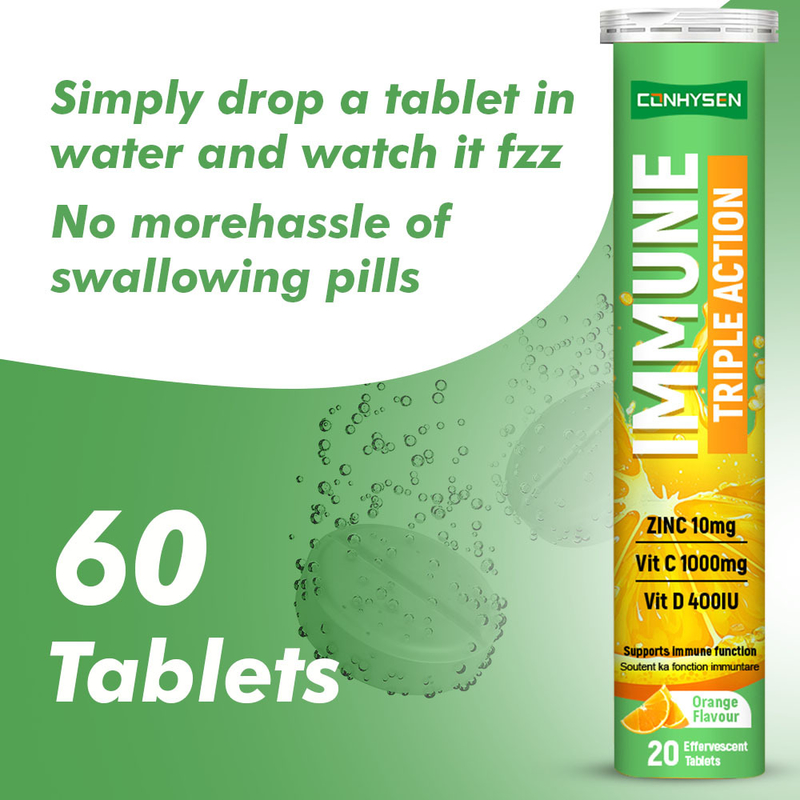 Immune Effervescent Tablets,Guangdong Kangsheng Farmasötik Teknoloji Şirketi, Ltd.Bu ürün bilimsel olarak üç temel bileşeni birleştirir: C vitamini, D vitamini,ve çinko - modern insanlar için uygun ve verimli bir bağışıklık desteği çözümü sağlamak içinGüçlü bir antioksidan olan C vitamini, beyaz kan hücrelerinin işlevini destekleyebilir ve vücudun direncini artırabilir.D vitamini bağışıklık sisteminin dengesini düzenlemeye ve kalsiyum emilimini iyileştirmeye yardımcı olurÇinko, bağışıklık hücrelerinin aktivitesini sürdürmek için önemli bir mineraldir. Üç element birlikte çalışır, sinerjik bir etki sağlar ve daha güçlü bir bağışıklık savunmasını oluşturmaya yardımcı olur.