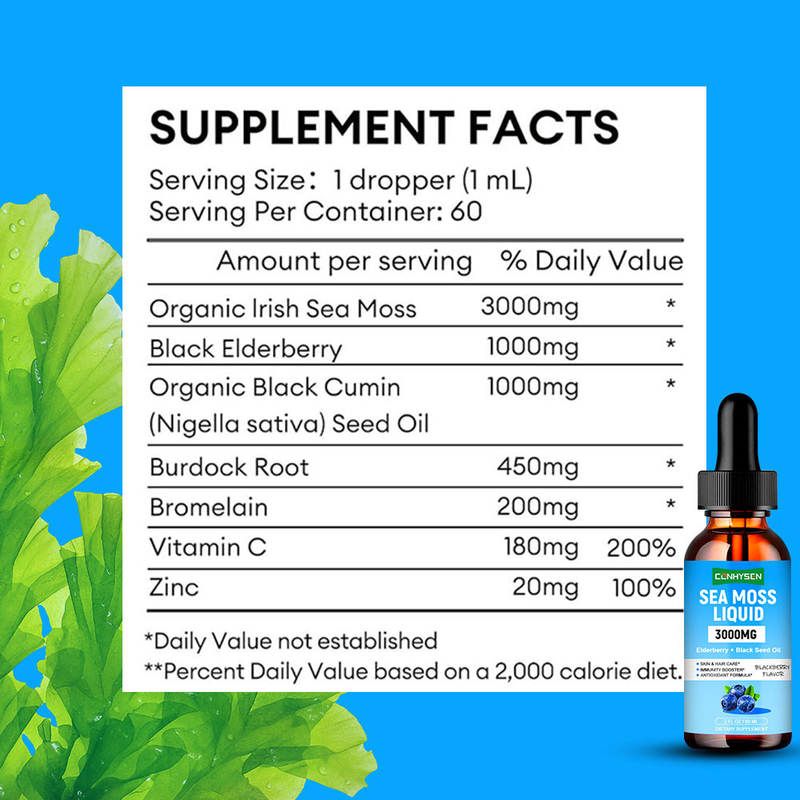 Guangdong Kangsheng Farmasötik Teknoloji Şirketi, Ltd.Sea Moss Liquid Drops, doğal bir deniz bitkisi özü sağlık takviyesi. This product is made from high-quality seaweed (algae) from the North Atlantic Ocean as raw materials and uses advanced low-temperature extraction technology to fully retain 92 kinds of minerals and vitamins and other nutrients in the seaweedBu ürünün bileşimi %100 doğal. Sıvı form insan vücudu tarafından daha kolay emilir.Uzun süreli kullanım, günlük beslenmede eksik olan deniz minerallerini tamamlamaya, tiroid sağlığını desteklemeye, bağışıklığı güçlendirmeye, bağırsak fonksiyonunu iyileştirmeye yardımcı olur.deri esnekliğini ve eklem esnekliğini korumaya yardımcı olur.