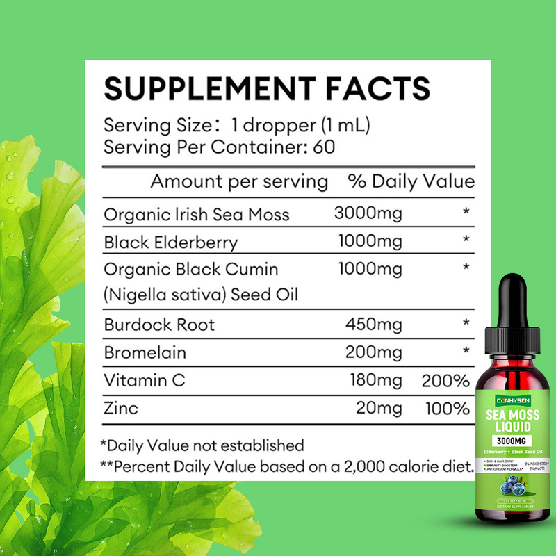 Guangdong Kangsheng Farmasötik Teknoloji Şirketi, Ltd.Sea Moss Liquid Drops, doğal bir deniz bitkisi özü sağlık takviyesi. This product is made from high-quality seaweed (algae) from the North Atlantic Ocean as raw materials and uses advanced low-temperature extraction technology to fully retain 92 kinds of minerals and vitamins and other nutrients in the seaweedBu ürünün bileşimi %100 doğal. Sıvı form insan vücudu tarafından daha kolay emilir.Uzun süreli kullanım, günlük beslenmede eksik olan deniz minerallerini tamamlamaya, tiroid sağlığını desteklemeye, bağışıklığı güçlendirmeye, bağırsak fonksiyonunu iyileştirmeye yardımcı olur.deri esnekliğini ve eklem esnekliğini korumaya yardımcı olur.