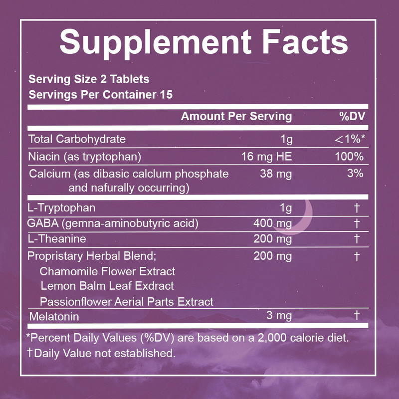 Melatonin, L-Triptofan, GABA, L-Teanin Limon Balsam Yaprağı, Ekstrakt Pasyon çiçeği Havadan Parçaları Ekstraktı