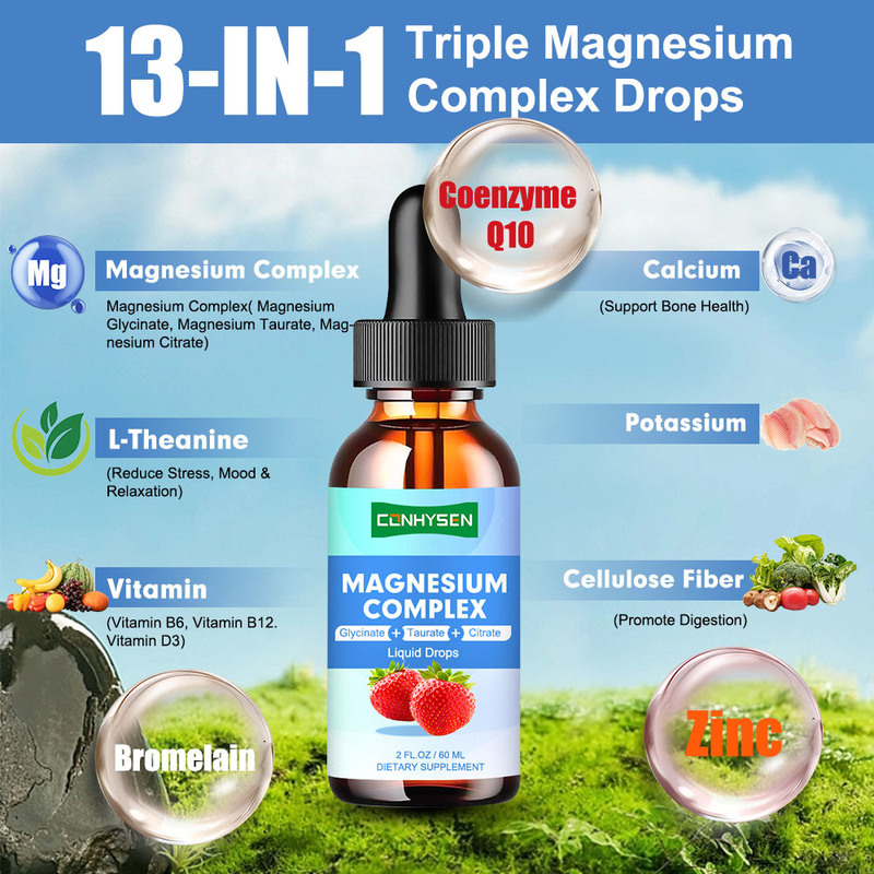 Üçlü Magnezyum Kompleksi sıvı damlalar glisinat uyku kas sinir desteği toptan özel